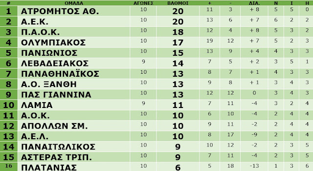Aποτελέσματα 10ης αγωνιστικής