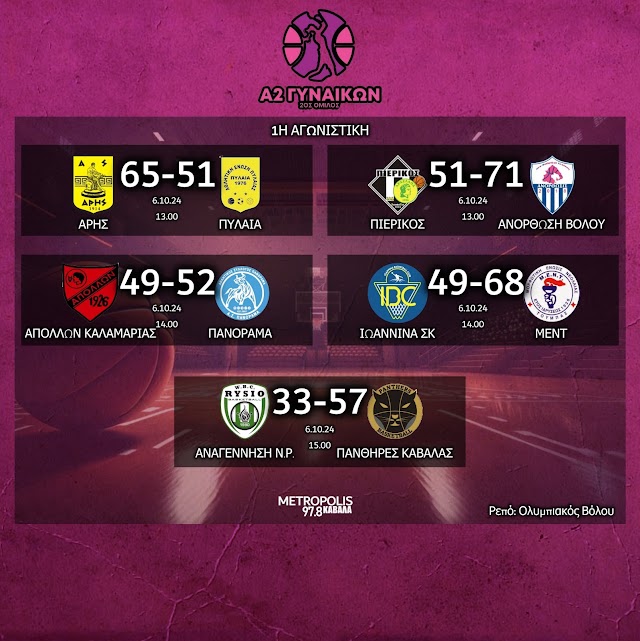 Α2 ΜΠΑΣΚΕΤ ΓΥΝΑΙΚΩΝ 2024-2025: Βαθμολογίες